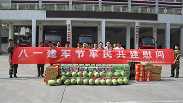 2015-07-30为发扬军民共建的优良传统,在“八一”建军节即将到来之际,2015年7月29日上午,集团副总经理兼四川金年会公司总经理郑坚鑫,四川金年会公司副总经理罗洋,工会副主席胡惠一行来到双流县消防大队,为战斗在消防第一线的双流县消防官兵送上节日的慰问,并进行了亲切的交谈。